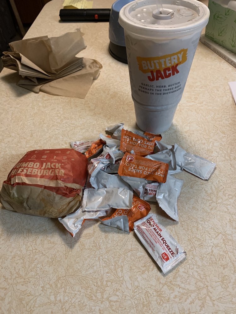100 beef seasoned as it grills, topped with American cheese, tomato, pickle, lettuce, onions, ketchup mayo. Anywhere else this Jr. Jack would be senior.